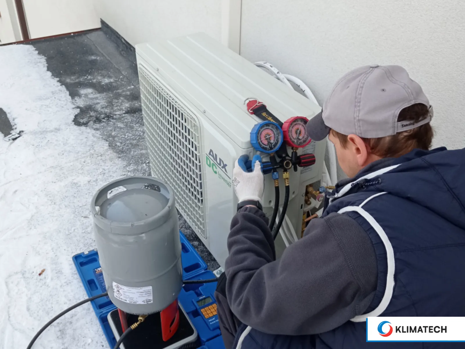 Napełniamy układ odpowiednią ilością czynnika chłodniczego typu R32, a następnie uruchamiamy klimatyzator po raz pierwszy, sprawdzając poprawność działania całego systemu.