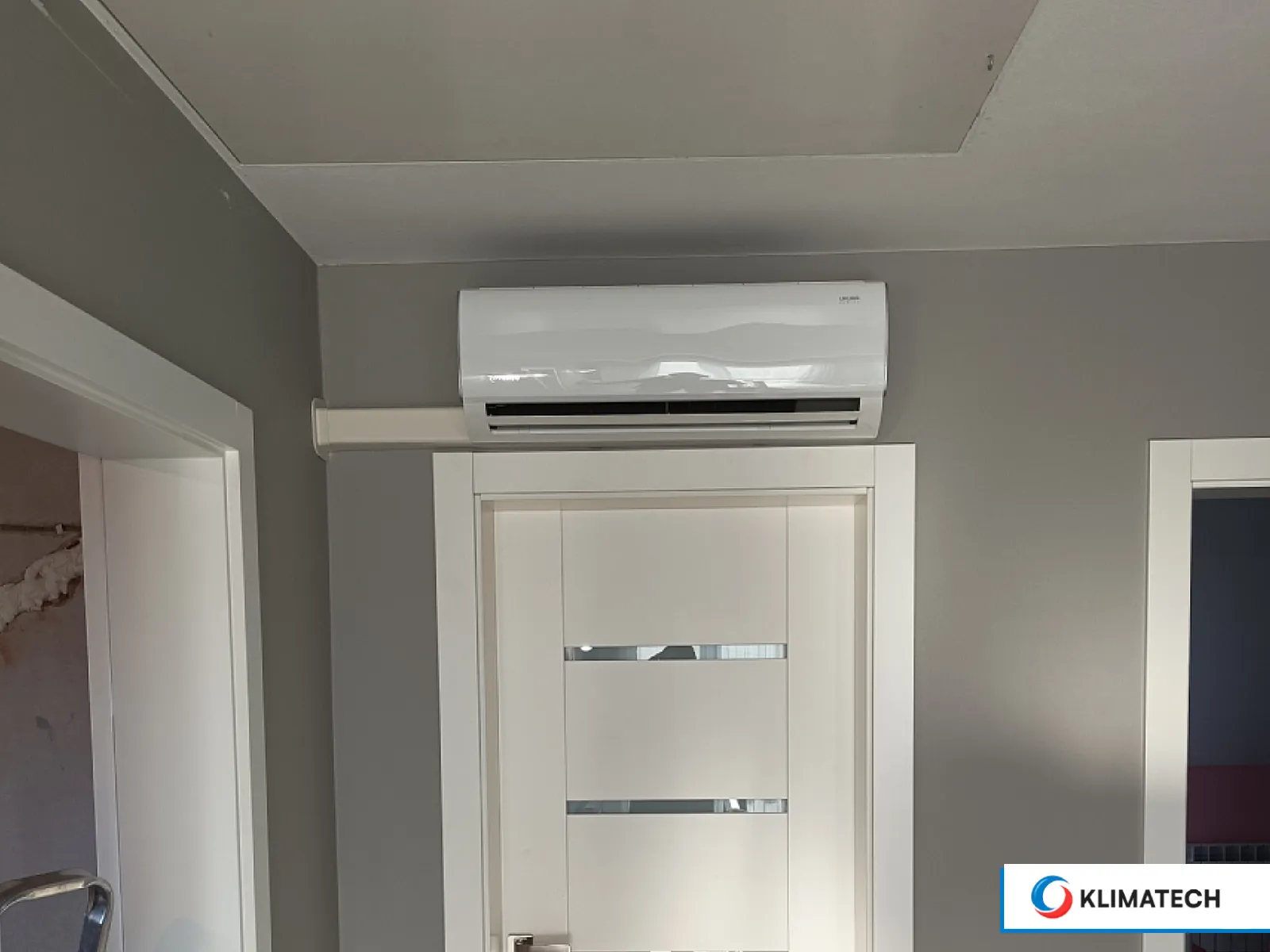Prace rozpoczynamy od wykonania niezbędnych otworów i bruzd w ścianach, którymi poprowadzimy rury chłodnicze oraz przewody elektryczne. Możemy także uniknąć kucia w ścianie. Wówczas stosujemy estetyczne korytka montażowe – praktyczne rozwiązanie skutecznie maskujące całą instalację.